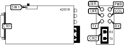 | AUI transceiver via | CN1 | Fiber optic | CN2 |