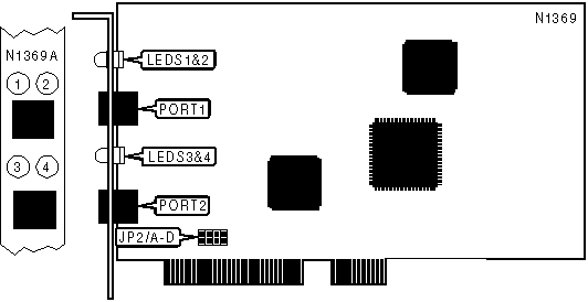 | 100Base-T port | PORT 1 | 10Base-T port | PORT 2 |
