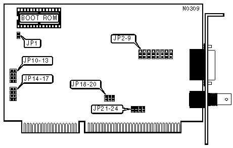| AUI transceiver via DB-15 port | Pins 1 & 2 closed |