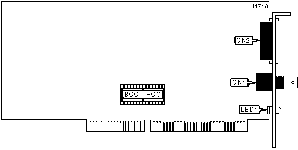 | RG-58A/U 50ohm | CN1 | AUI transceiver via DB-15 | CN2 |