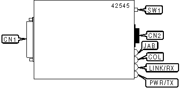 | AUI transceiver via | CN1 | RJ-45 UTP connector | CN2 |