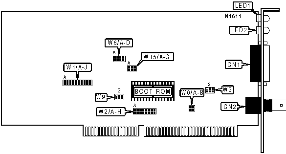 | AUI transceiver via DB-15 | CN1 | RG-58A/U 50ohm | CN2 |