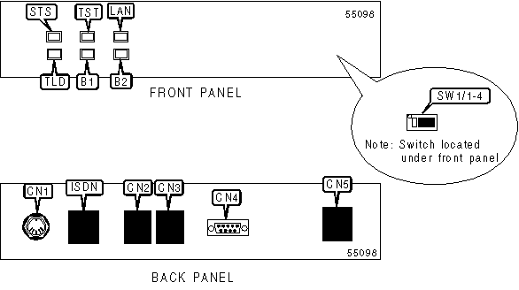 | Phone line 1 (RJ-11) | CN2 | 10 BaseT interface | CN5 |