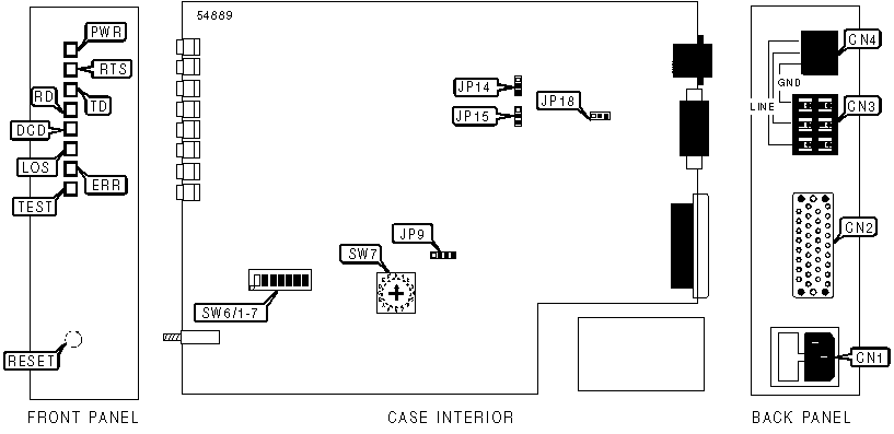 | DTE serial port | CN2 | Reset push-button | RESET |