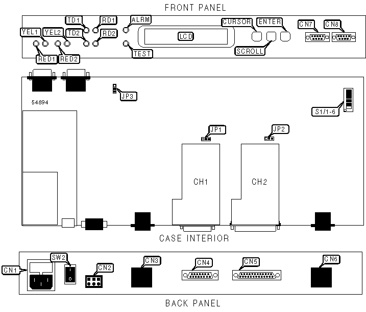 | Channel 1 port (15-pin | CN4 | Power switch | SW2 |