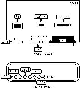 | LED4 | Unidentified | On | CTS signal is high - device |