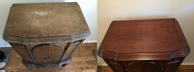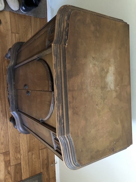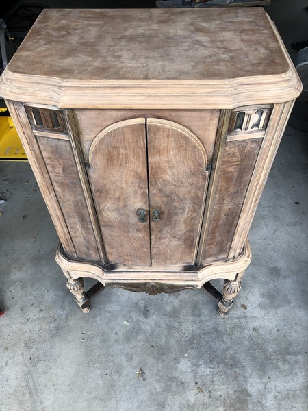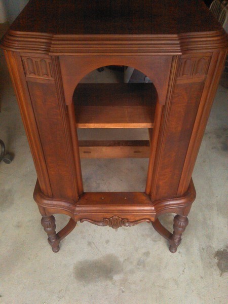 OK, I finally completed refinishing the radio cabinet that my aunt
