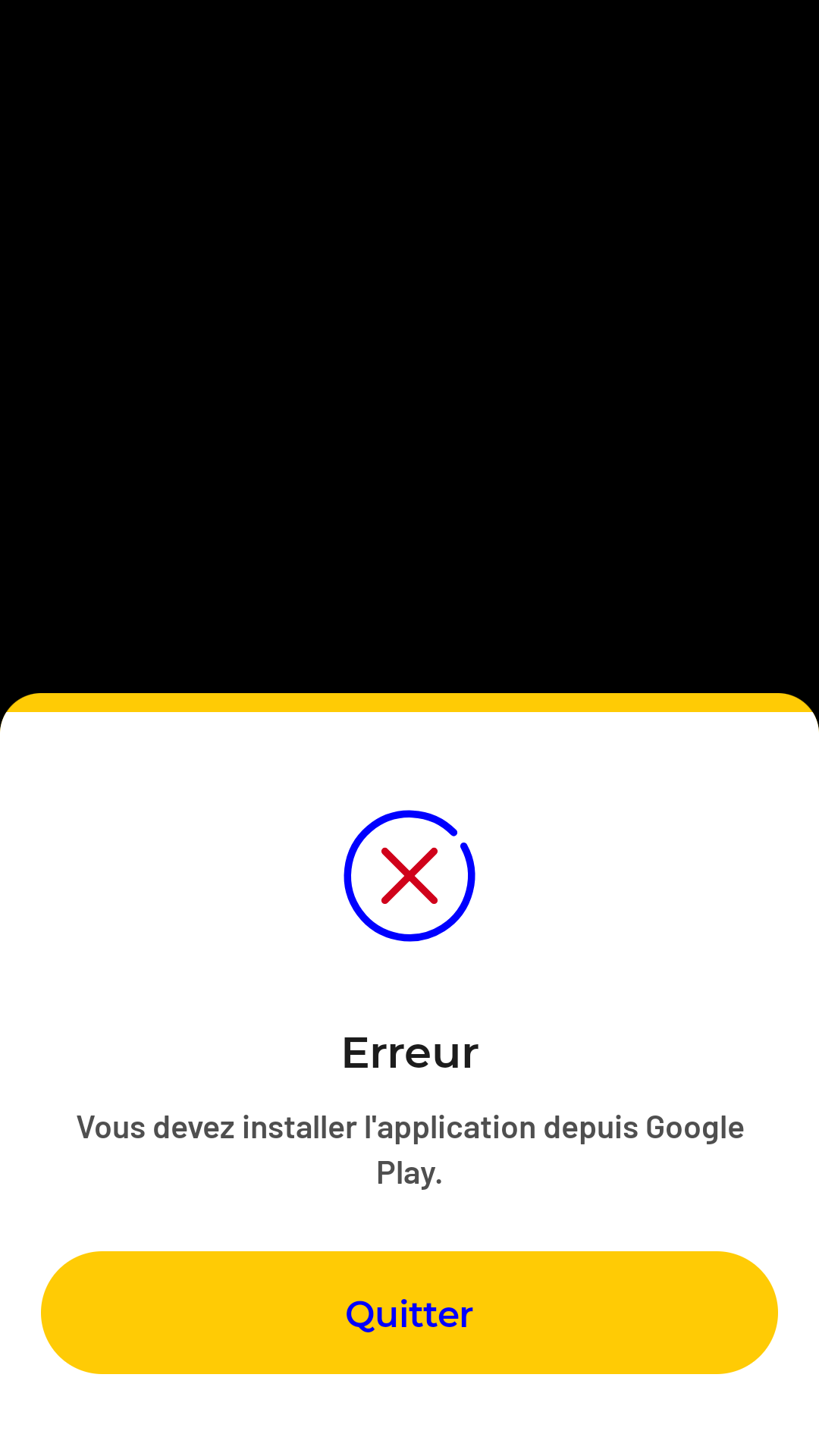 "Erreur, vous devez installer l'application depuis Google Play", et