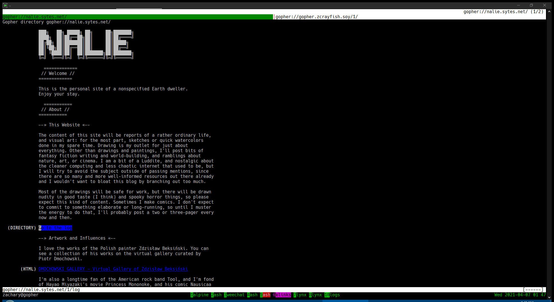 DIR gopher.zcrayfish.soy gopher root