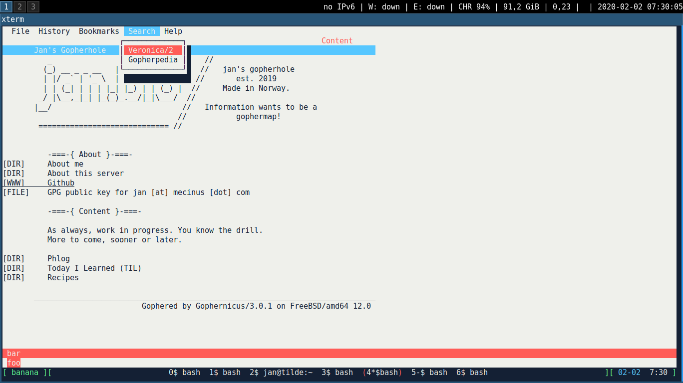(_) __ _ _ __ | |__ (_) ___ // jan's gopherhole