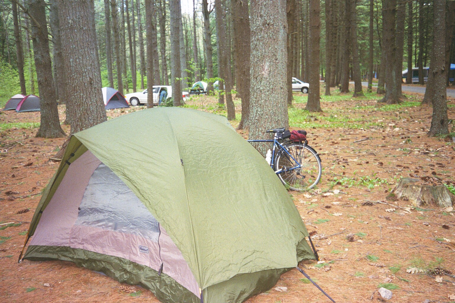 ,,, Other Rides and Notes 1996 -- 2001 For these years, I rode the Boston to NY AIDS Rides and Montreal to Portland Ride. My cousin Paul helped me raise funds and crewed these rides. I will try and find some old pictures and attach them here. 1998 Below are pictures of a camping trip I took. Of the touring rides I have done before 2010, this is the only ride I have any pictures from. I went camping at a State Park my Family would camp at every year when I was a kid. By Family, my parents and their brother's and sister's families. I think all totaled there where about 50 of us (maybe more). So it was more like an invasion. On this trip, I stayed at the camping spot near the main entrance, the park was rather full when I arrived. But the next day it emptied out. I spent 5 days camping, a couple of days I would ride and explore the area. Was a nice relaxing time. One funny thing happened on the way home. I rode by a house with a young girl, her brother and their mother enjoying the nice weather in their front yard. I guess the kids where around 8 to 10 years old. The boy looked scared when he saw me ride by, but the girl yelled out to her mother "Wow, what a way to travel!". I got a chuckle out of that. I wonder if she took up touring when she got older, I like to think so. IMG Picture of the loaded Bicycle IMG Picture my Camp $Id: gophermap,v 1.10 2024/10/15 21:08:37 jmccue Exp $