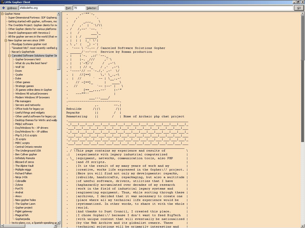 DIR Back to index page __________________________________________________________ Other software for legacy PC __________________________________________________________ This section contains important and useful additional programs for Windows 95/98/ME/XP Which I recommend to use. [ Table of content ]: 1. Gopher clients 2. Personal Firewall's 3. Telnet and Networks 4. Mail Clients Software 5. IRC Clients Software 6. Virtualization and emulators 7. Native Archivators Software 8. Non-Native Archivators Tools 9. CD/DVD Drive software 10. Video convertors, editors, grabbers 11. Audio convertors, editors, grabbers 12. Software for Karaoke 13. Psychotronic tech and fields 14. Medicine and health 15. Family software .......................................................... Gopher clients .......................................................... To launch the address bar, press the "G" key and enter the address with gopher:// DOS Console Lynx browser for DOS 2.8.2 rel 1 [723 kb] For serfing in Gopherspace from DOS and 386+ CPU. .......................................................... DOS Console Lynx browser for Win32 2.8.2 rel 1 [674 kb] Console browser for Win32 that allows you to visit Gopher:// holes IMG Screen [28 kb] Example of work in Windows 98 IMG Screen [36 kb] Example of work in Windows XP .......................................................... DOS Console Lynx browser for Win32 2.8.3 dev 3 [625 kb] Console browser for Win32 that allows you to visit Gopher:// holes .......................................................... DOS Console Lynx browser for Win32 2.8.3 dev 17 [746 kb] Console browser for Win32 that allows you to visit Gopher:// holes .......................................................... DOS Console Lynx Browser for Win32 2.8.5 rel 1 [1 478 kb] Version of the popular console browser for Windows 9x-XP. Unlike the above versions, it supports not only http:// and gopher:// protocol, but also SSL. Does not support TLS 1.2-1.3. To launch the browser on Windows 98/Me, change the indirect file paths in the lynx98.bat file (C:\YOUR_FOLDER\) to direct addresses, for example, C:\lynx24\ This is the latest version of the browser 2024 that I know of. .......................................................... DOS Gopherus [191 kb] IMG Screenshot Simple console Gopher client. There is no way to expand to full screen. Minimum of functions. .......................................................... Nice graphical Gopher client. Looks like a classic two-column Ws Gopher client. Makes Gopher surfing very comfortable. But very weak functionality. DOS Little Gopher client [752 kb] IMG Screenshot .......................................................... Personal Firewall's .......................................................... DOS Agnitum Outpost Firewall 1.0.1125 RC1 Fixed [2 092 kb] This version also works for Win95 OSR2! DOS Agnitum Outpost Firewall 3.0 for Win32 [1 800 kb] The best Firewall what I know for Win32, and especially for Windows 98/Me/2k. Allows to control the launch of network programs, and not just network attacks. .......................................................... DOS BlackICE Defender 1.9.20 Fixed for Win9x [2 797 kb] BlackICE Defender's major attraction is its ability to protect users from the hacks that can happen in the open world of the Internet. DOS BlackICE PC Protection 3.6 Fixed for Win32 [6 194 kb] This is a powerful tool that defends your PC against intruders. BlackICE analyzes the electronic traffic going in and out of your computer, and uses that information to build a dynamic firewall to protect your computer. .......................................................... DOS Nuke Nabber 2.9 for Win9x [720 kb] Sets itself up to listen on TCP and UDP ports commonly attacked over the internet. A total of 50 ports can be monitored simultaneously. ICMP dest_unreach attacks are now logged. It is designed to give you the information you need in order to trace an attacker including a method of finding an attackers nickname on IRC (mIRC, VIRC and PIRCH clients are supported). .......................................................... Telnet and Networks .......................................................... DOS Console Prompt ANSI Color FIX for WinNT [14 kb] Fixes your default console cmd.exe colors to be compliant with the ANSI specification. Includes replacement 16x16x16c and 32x32x256c icon. .......................................................... DOS Password unlocker for Win32 [30 kb] Password unlocker the tool for restoring forgotten Windows software passwords hidden by asterisks (***). For example browsers or mail passwords. .......................................................... DOS Simp Term 0.9.4 for Win32 [122 kb] Windowed telnet, finger, daytime, echo, whois and etc client. This client is configured to correctly display ANSII graphics in BBS at the level of professional terminals by me. But just in case, check if the terminal font is available on your system! .......................................................... DOS Exterm 1.2 for Win32 [403 kb] Terminal manager of AT commands for Com ports. .......................................................... DOS MTelnet 1.2 for Win32 [140 kb] A good console terminal with good support for ASCII graphics; to switch to full-screen mode, press Alt+Enter. .......................................................... DOS Net Term 3.42 for Win32 [2 074 kb] This archive contains two different installations of the same terminal version. DOS Net Term 4.2 for Win32 [1 421 kb] A window classic terminal that operates on the basis of its own color schemes and has a lot of settings for the user. Connection is possible both via the network and via a modem. Select the Terminal font as the main font, and also make fine adjustments to the emulation before starting work. .......................................................... DOS Net Runner 0.09 for Win32 [79 kb] Good support for ASCII graphics, but obv