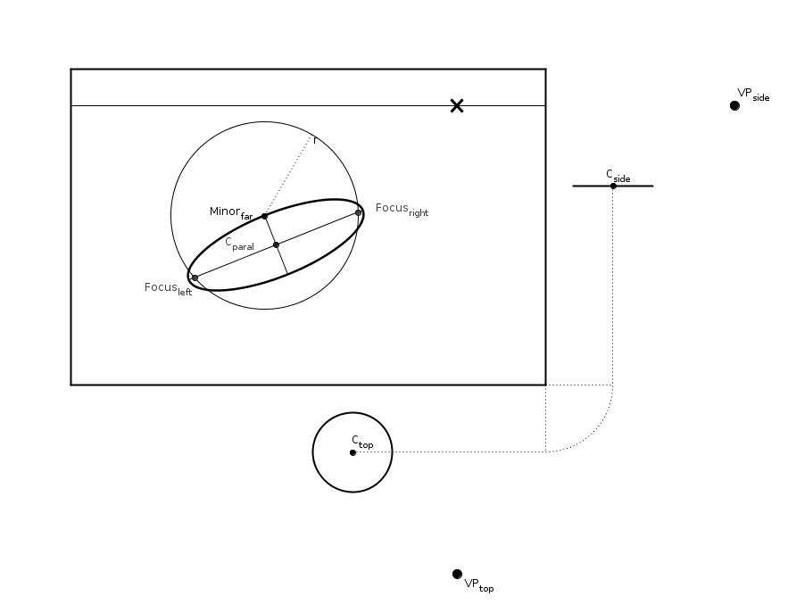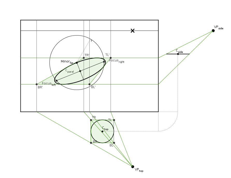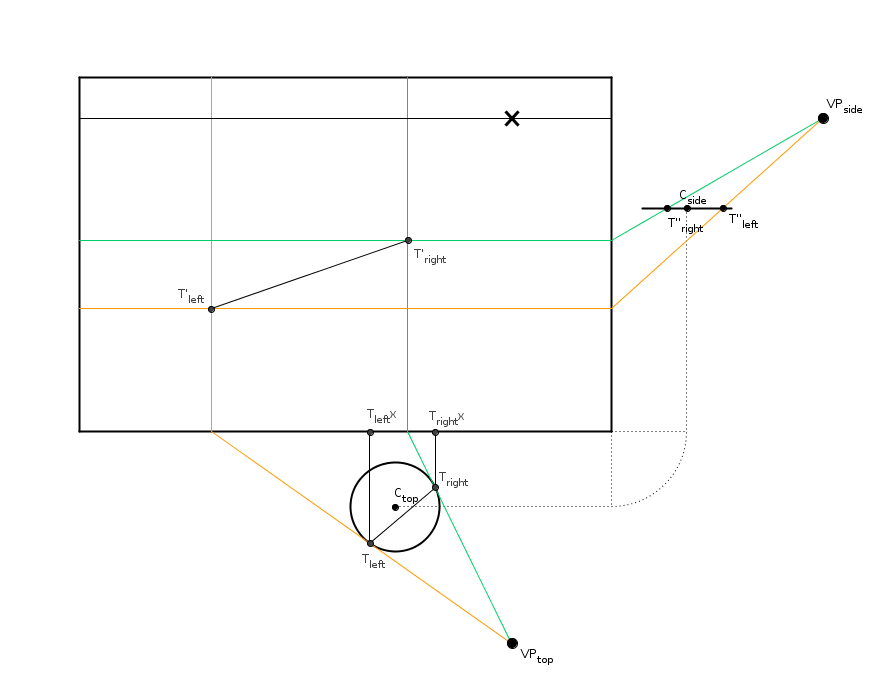 projection line, draw to VPtop. Now we found Tfar and Tnear. We