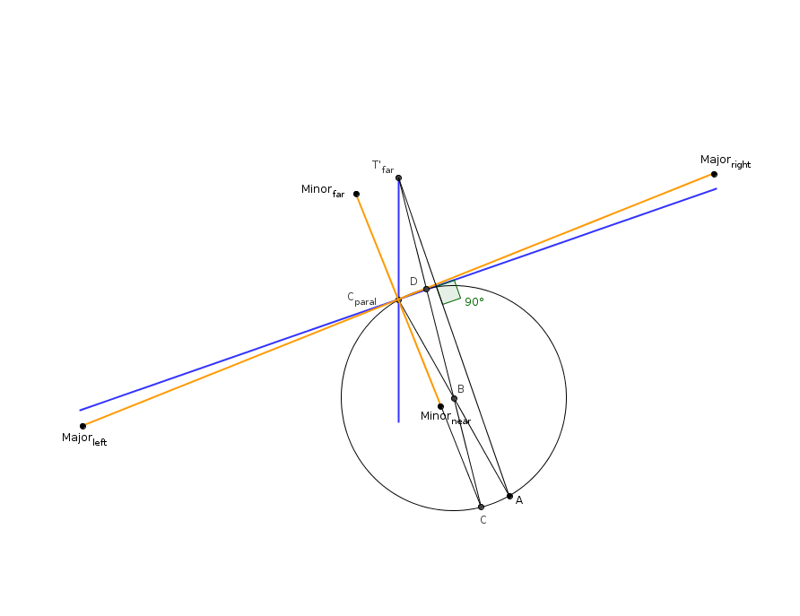 with T'left - T'right, so we draw a ray from K to Tfar (that we