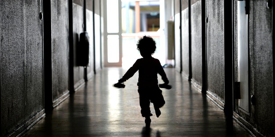 IMG Bild: Ein Kind in einer Erstaufnahmeeinrichtung für Flüchtlinge in Gießen.