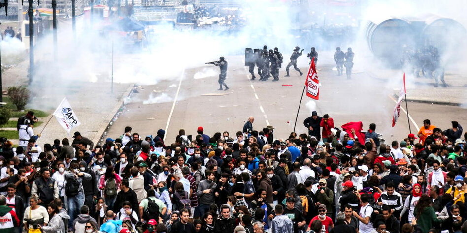 IMG Bild: Tränengaseinsatz gegen Lehrer in Curitiba.