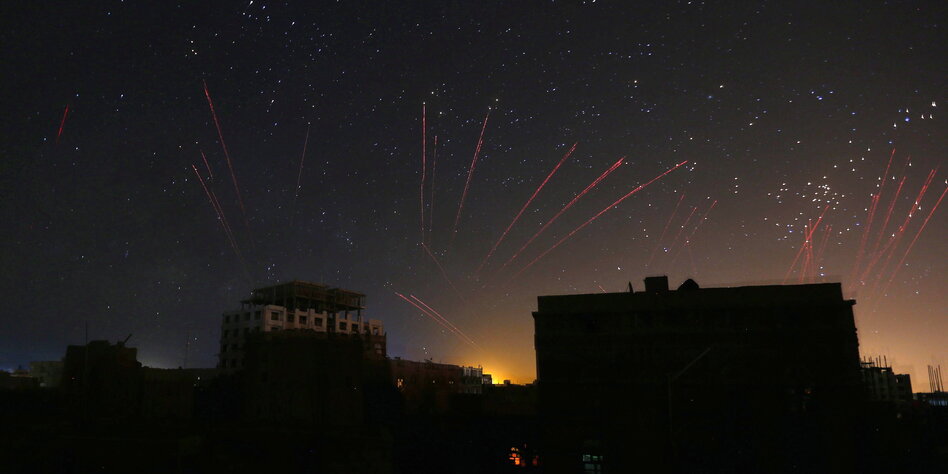IMG Bild: Noch kein Freudenfeuerwerk: Flakfeuer über Sanaa.