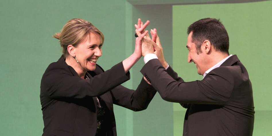 IMG Bild: Bester Laune: die Parteivorsitzenden Simone Peter und Cem Özdemir