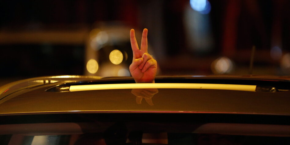 formten das Siegeszeichen oder schwenkten weiße Tücher. Außenminister