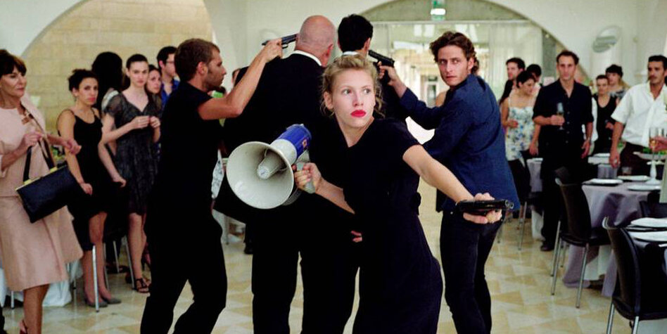 IMG Bild: Sozialprotest auf der Reichenparty: Eine Aktion von Shira (Yaara Pelzig, Mi.) und ihren Mitstreitern.