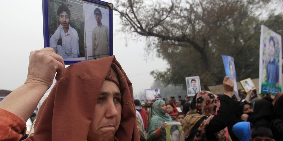 IMG Bild: Angehörige der Schüler, die bei einem Talibanangriff in Peschawar ermordet wurden. Der Angriff führte zur Aufhebung des Moratoriums für Hinrichtungen.