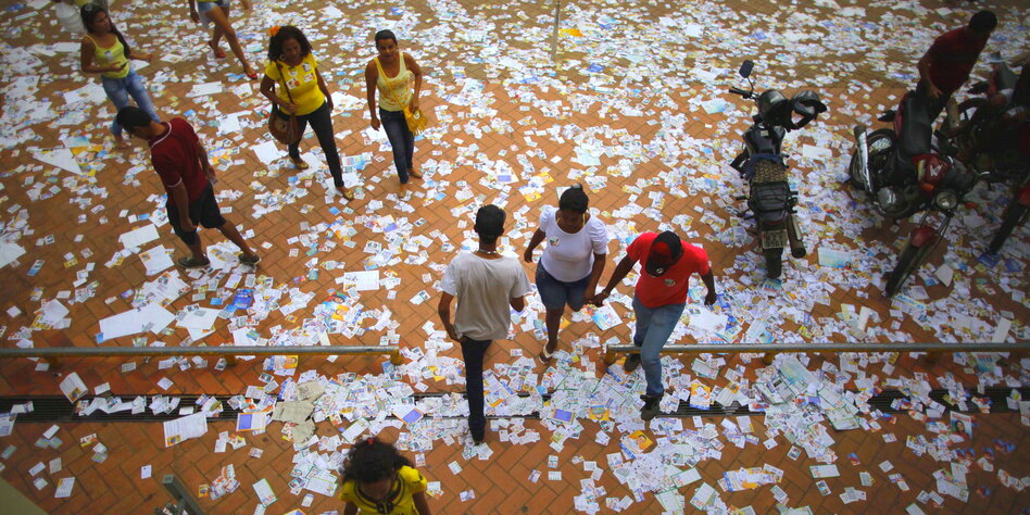 IMG Bild: Verzettelt: Wahlwerbung auf dem Boden eines Gebäudes in Rio.