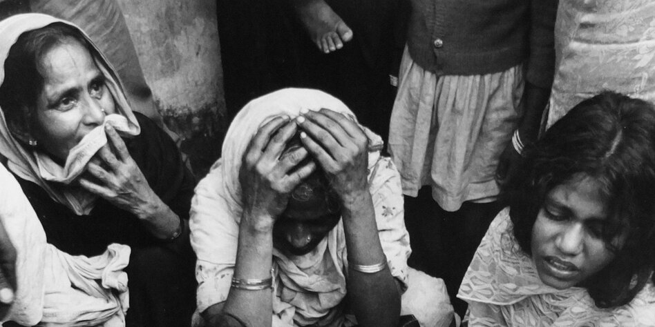 IMG Bild: Fotografiert für die Agentur Magnum: Frauen nach der Hinrichtung ihrer Männer in Bangladesh im Jahr 1971.