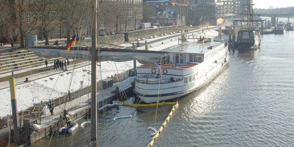 wurden Ölsperren gelegt, um Verunreinigungen durch möglicherweise