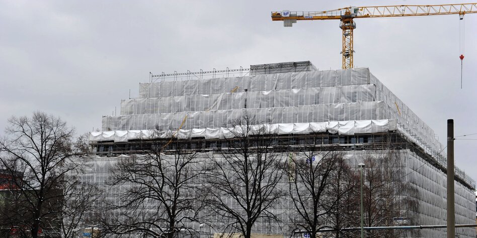 IMG Bild: Hier entstehen Luxuswohnungen und ein Hotel: Baustelle am Schiffbauerdamm im vergangenen März.