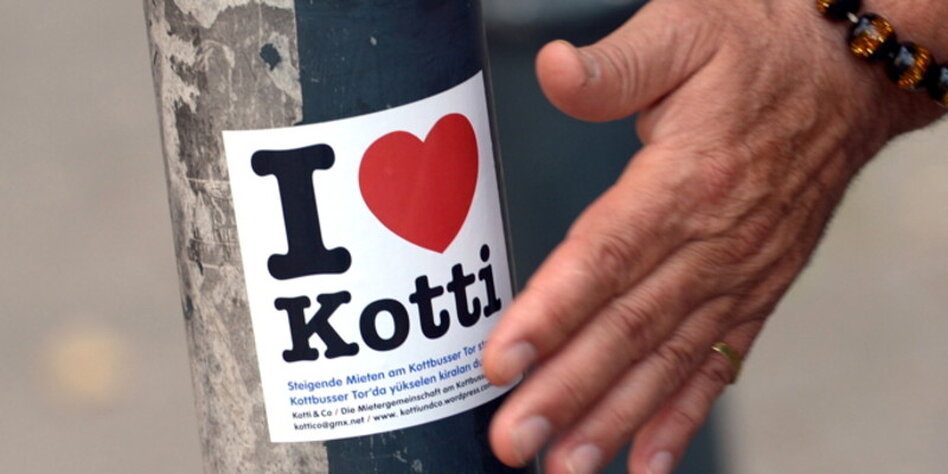 Kotti“-Aufkleber entworfen, die jetzt überall in der Umgebung kleben. Ein