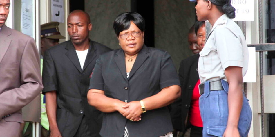 IMG Bild: Die Witwe von Solomon Mujuru, Joice Mujuru, vor dem Gerichtsgebäude in Harare.