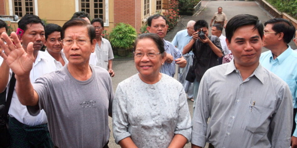 IMG Bild: Ex-Regierungschef Khin Nyunt (li.) und seine Frau freuen sich mit Verwandten über die Aufhebung des Hausarrests.
