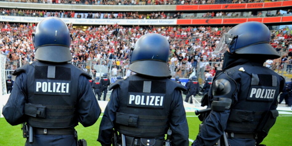 IMG Bild: Polizei in Kampfmontur im Stadion – das sieht keiner gern, egal ob Fans, Offizielle oder die Polizisten selbst.