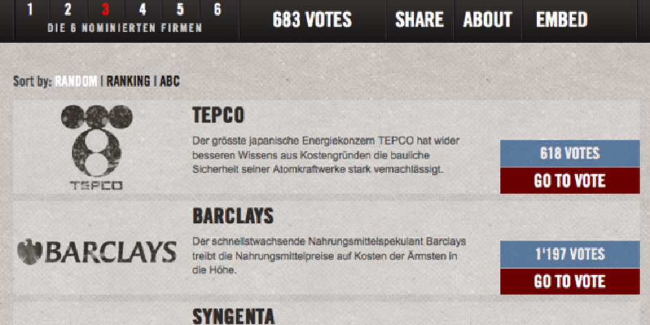 > Im Netz kann seit Donnerstag über unsoziale und unökologische Unternehmen