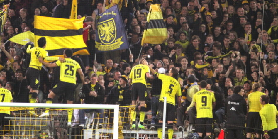 IMG Bild: Titelverteidiger in Feierlaune: Nach dem Sieg gegen Schalke wollten die Dortmunder Spieler nah bei ihren Fans sein.