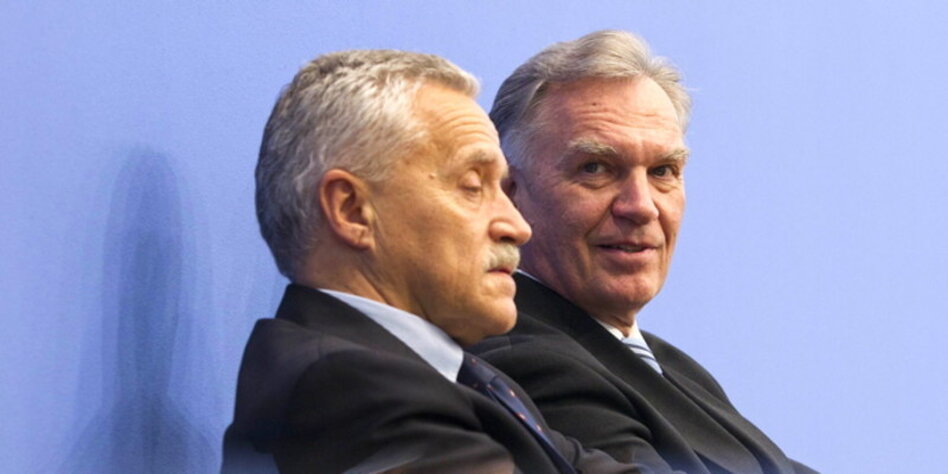 IMG Bild: Dürfen nicht fusionieren, aber schon ein bisschen kuscheln: Der Chef vom Bundesverfassungsschutz, Heinz Fromm, und vom BKA, Jörg Ziercke.