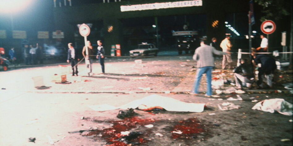 IMG Bild: Bomben gegen Feiernde: Das Münchner Oktoberfestgelände 1973 nach dem Anschlag durch Neonazis.