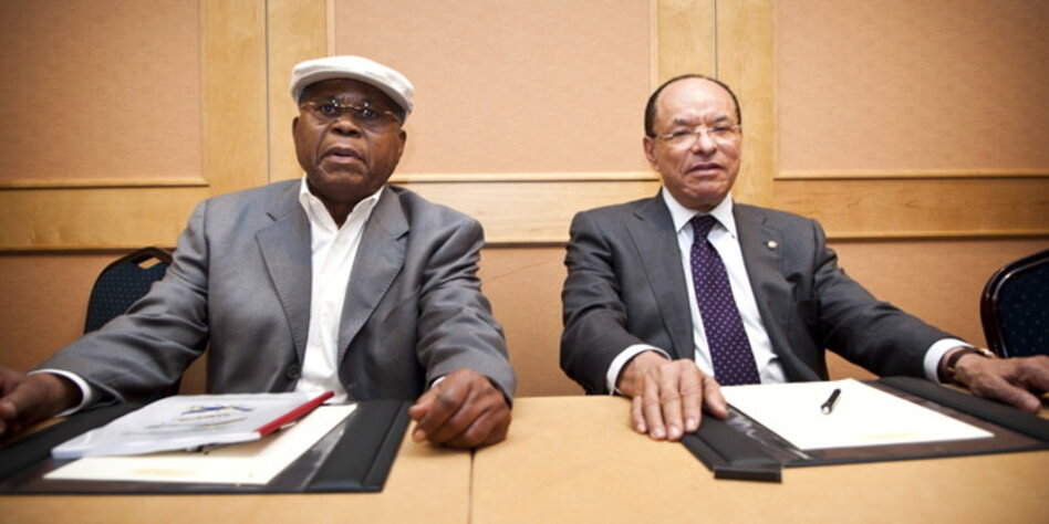 IMG Bild: Sitzt gut: Etienne Tshisekedi, hier mit Kongos Senatspräsident Kengo wa Dondo in Brüssel.