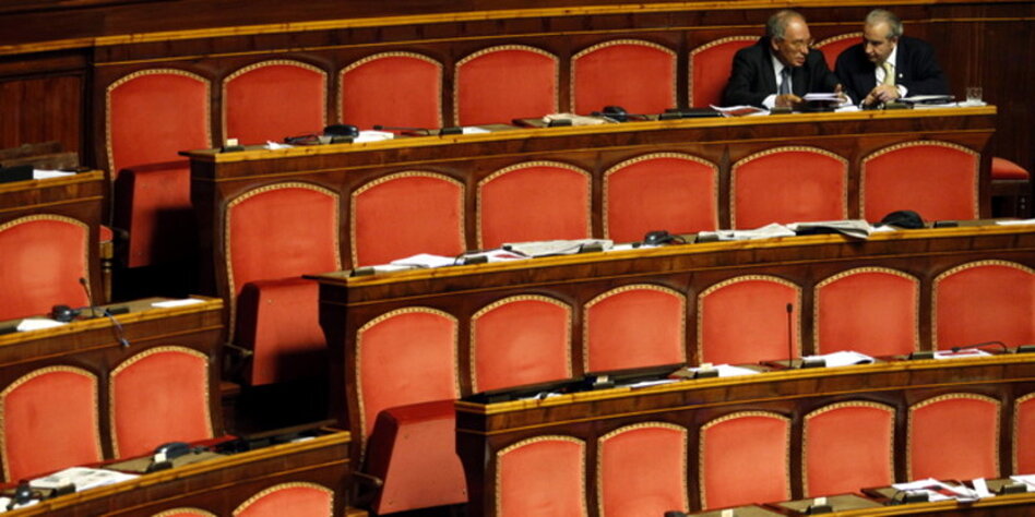 IMG Bild: Die Stühle des italienischen Parlaments leer wie die Staatskasse - die Folge: Herabstufung der Bonität.