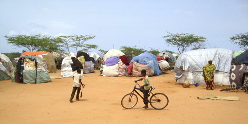 IMG Bild: Wer ist schuld am Hunger? Flüchtlingslager nahe Mogadischu, Somalia.