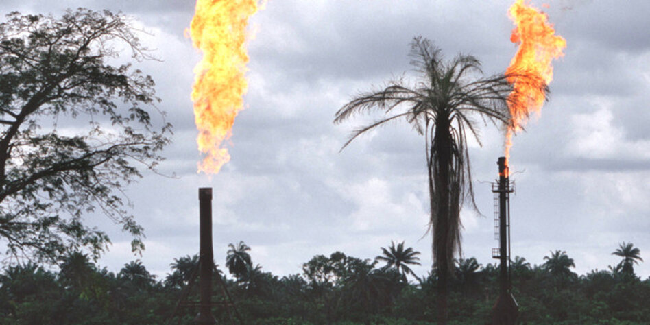 IMG Bild: Grobe Umweltverschmutzung durch abfackeln von Gas im Nigerdelta.