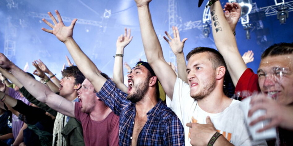 IMG Bild: Leicht aggressiv sehen durchaus auch die Fans aus, hier auf dem Roskilde-Festival.