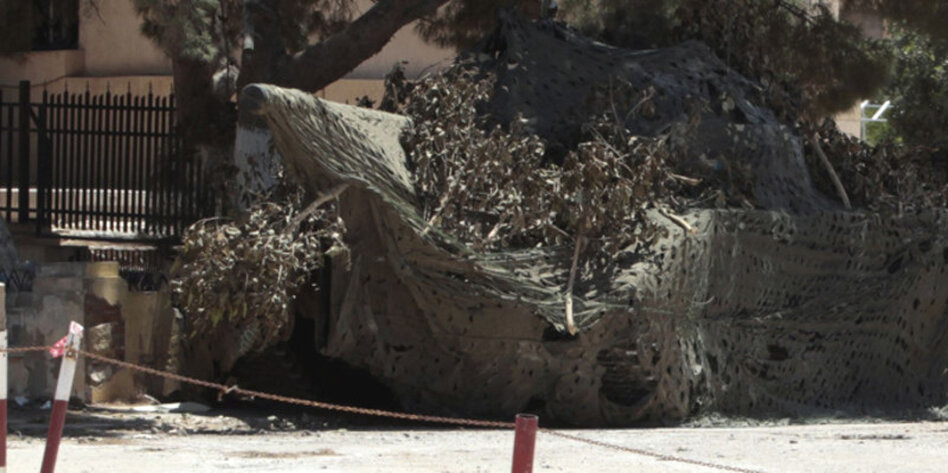 IMG Bild: Ruhe vor dem Sturm: ein Panzer der Regierungstruppen in der libyschen Stadt Gharyan.