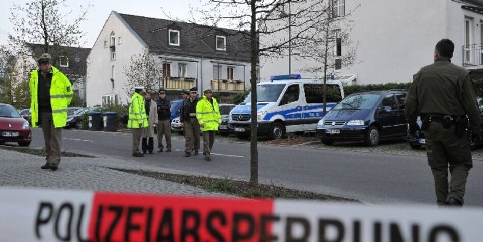 IMG Bild: Der nach den Schüssen abgesperrte Tatort ion Schönfließ