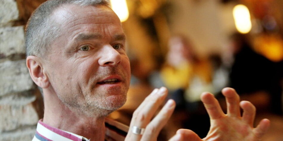 Jürgen Domian, 52, kurz geschorene Haare, beugt sich über eine