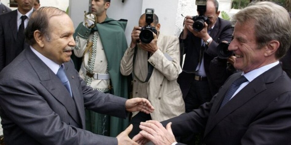 IMG Bild: Mittelmeeranrainer unter sich: Der französische Außenminister Bernard Kouchner und Algeriens Präsident Abdelaziz Bouteflika (l).