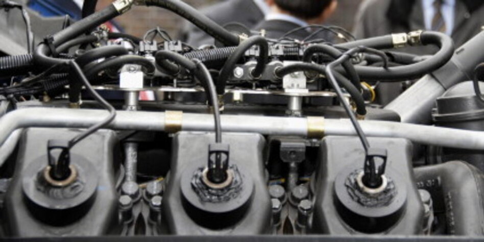 IMG Bild: Die Umrüstung auf Flüssiggas rechnet sich auch für Durchschnittsfahrer. Hier ein mit Flüssiggas angetriebener LKW-Motor als Ausstellungsstück.