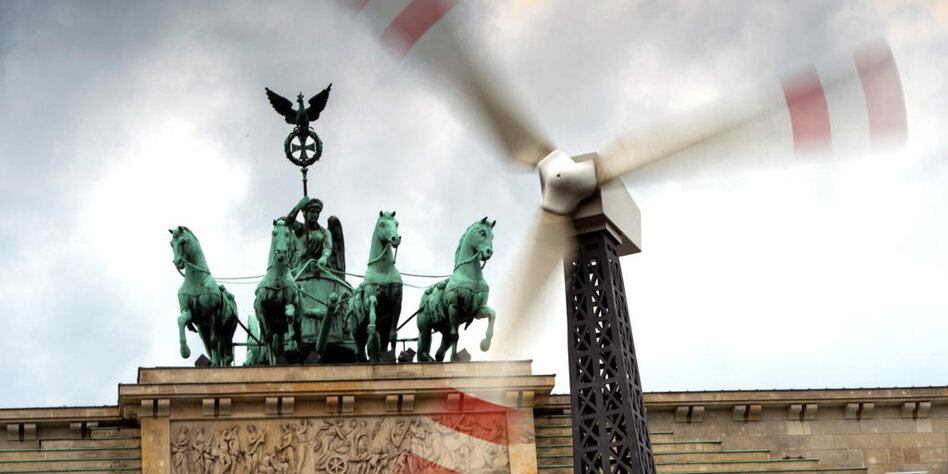 IMG Bild: Städteverwirrung galore: Klimaaktivisten protestieren in Berlin – mit einem Eiffelturm als Windrad