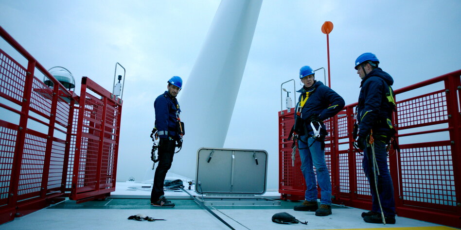 dem Boot zum Windpark in der Nordsee rausdüst, bis hoch zu den