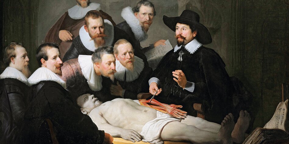 IMG Bild: Dieser Arzt interessiert sich mehr für den Körperbau als für die Todesursache: „Die Anatomie des Dr. Tulp“ von Rembrandt.
